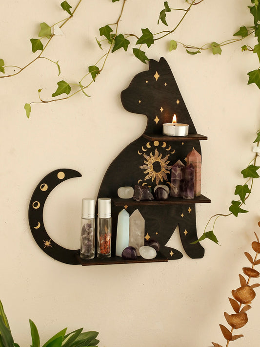 Black Cat Wooden Shelf