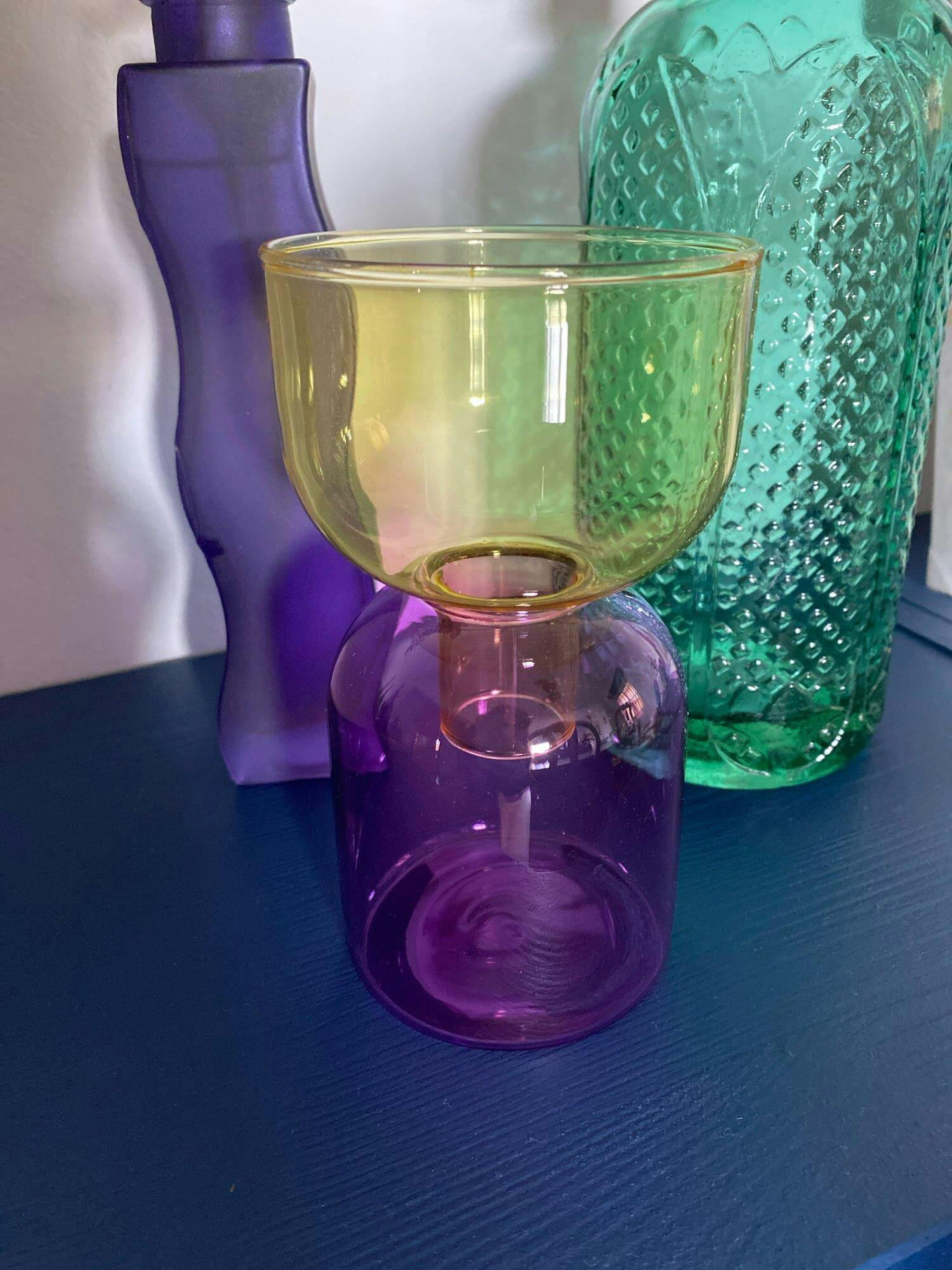 Customize your ambiance with our Colorful Glass Vase/Candle Holder, where you can mix and match the base and top parts to create your perfect combination.