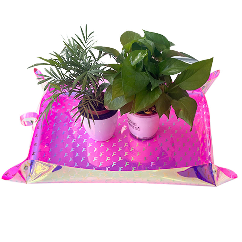 The best part? That holographic pink/blue shine. It looks like a little disco stage for my plants, not a boring tarp.